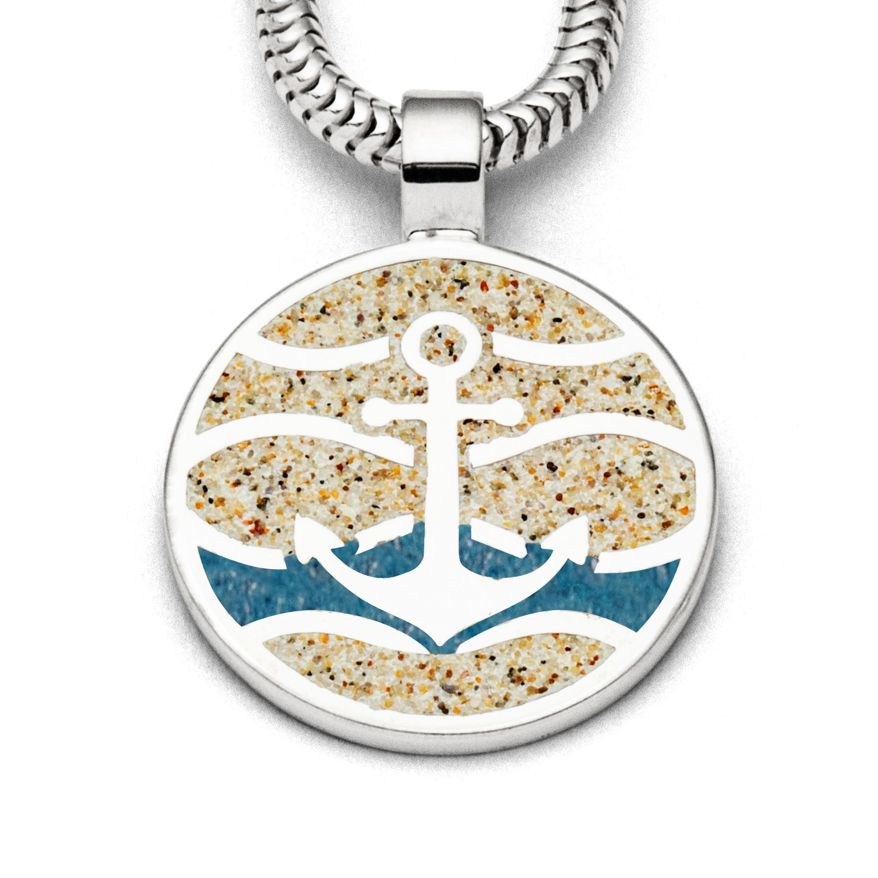 Anhänger 25 mm"Strandwellen" Anker Strandsand/blauer Steinsand