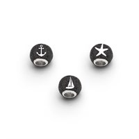 Lavasandkugel mit 3 silbernen Elementen, -Seestern-Anker-Ahoi Schiff-, eingebettet in Lavasand, gefaßt in rhodinierten 925er Sterling-Silber