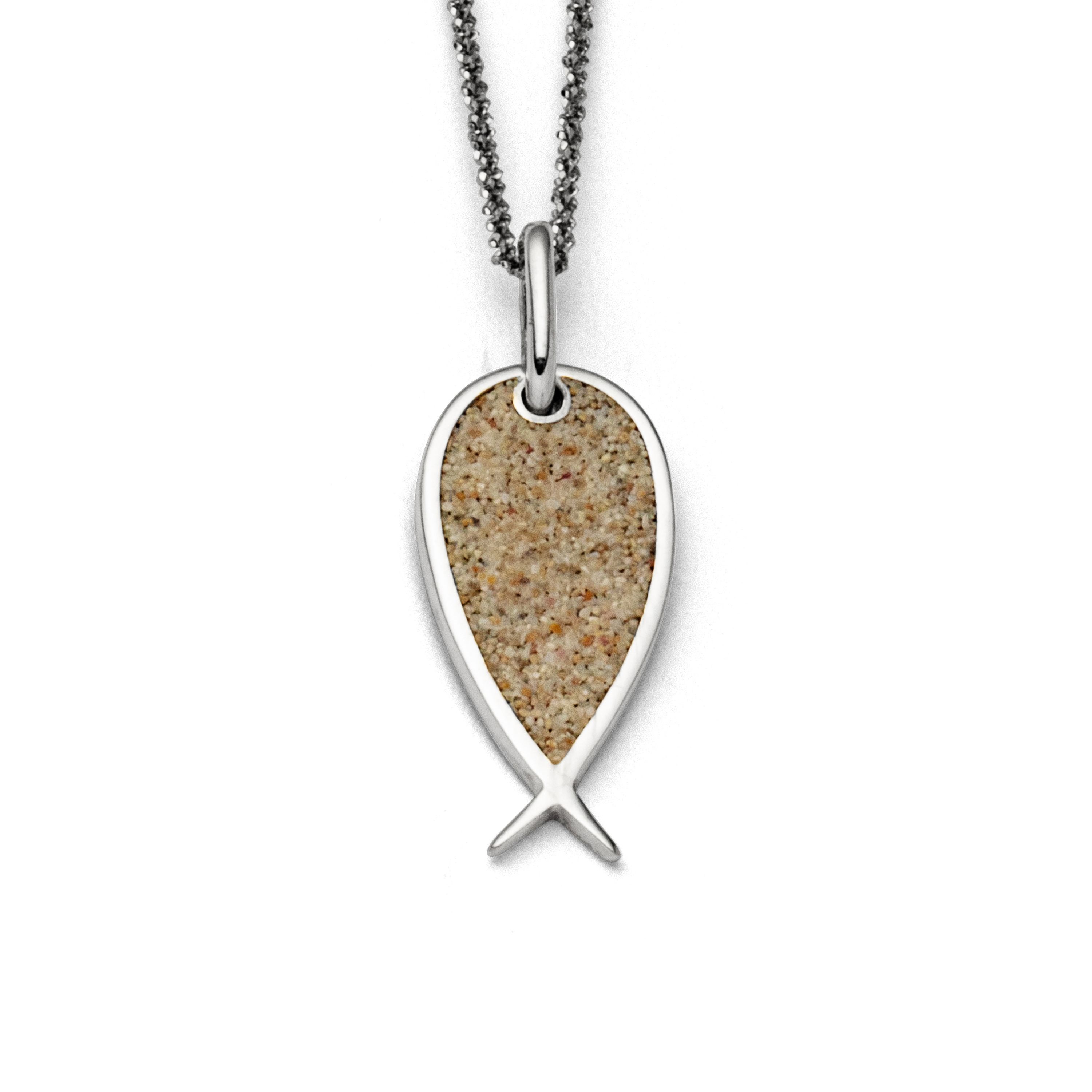 Anhänger "Fisch" Anhänger in Fischform, gefüllt mit Strandsand, aus rhodiniertem 925er Sterlingsilber.