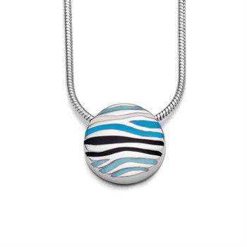 Anhänger "Ocean" runder Anhänger aus rhodiniertem 925er Sterling-Silber mit eingearbeiteten, wellenförmigen, blau-weiß-schwarzen Emaille-Linien.