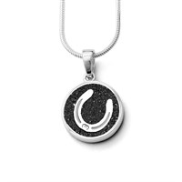 Runder Anhänger Pferdeglück "Hufeisen" gefüllt mit Lavasand und einem Pferdekopf aus Silber, gefasst in rhodiniertem 925er Silber