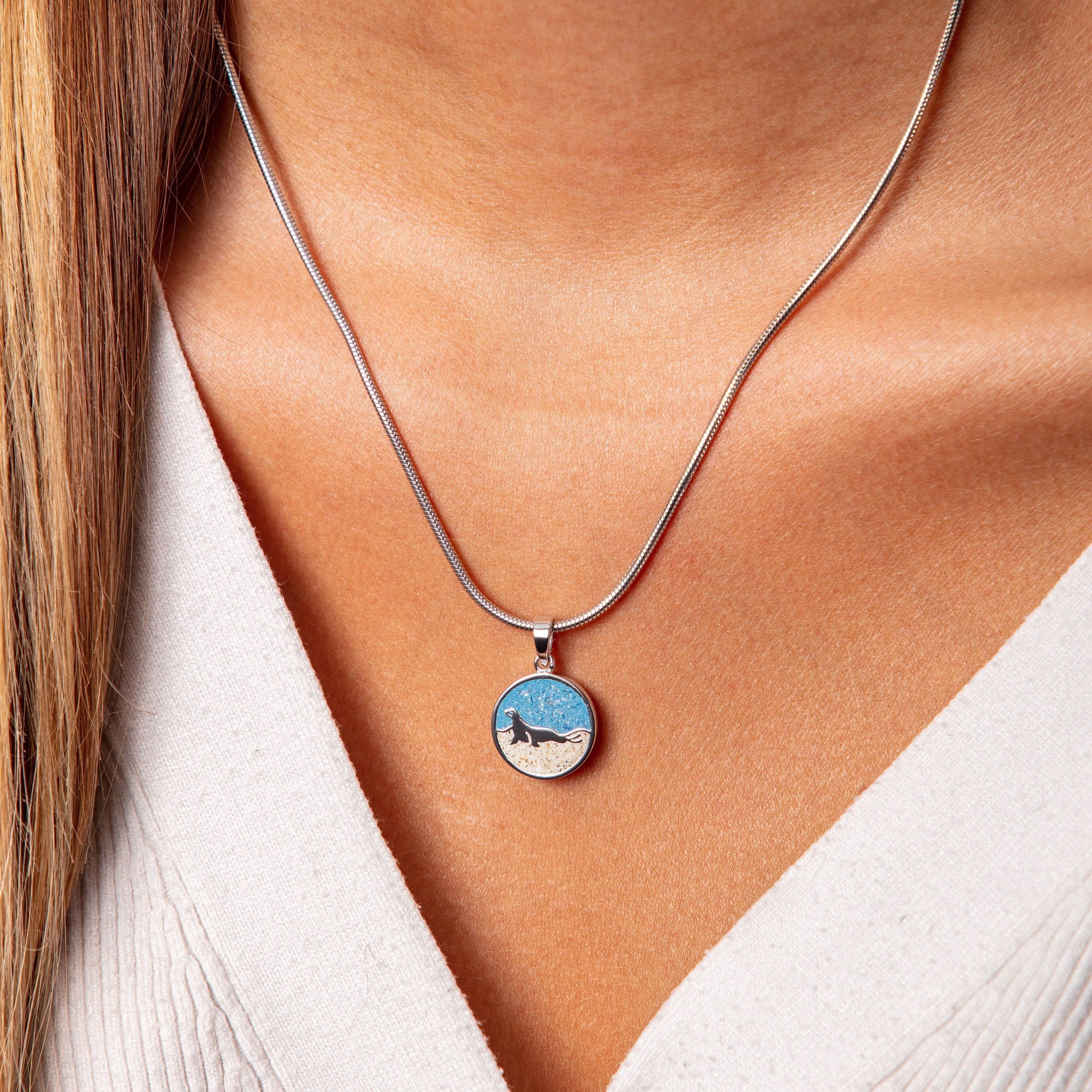 - EINZIGARTIGES DESIGN: Der außergewöhnliche Anhänger versprüht maritimes Flair und besticht durch ein schönes "Seehund-Motiv", eingebettet in echten Strandsand und blauen Steinsand.
