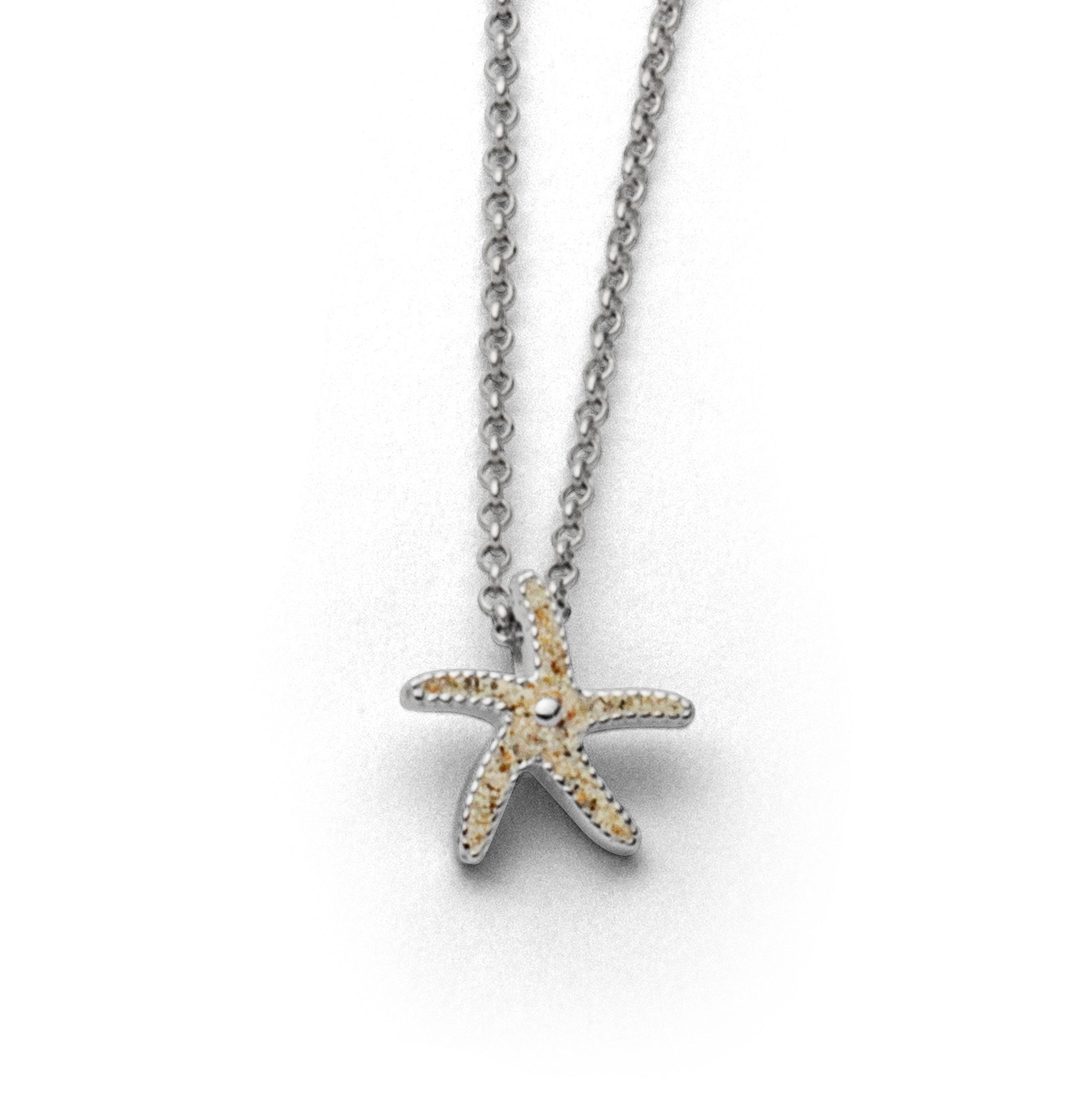 Anhänger in Form eines Seesterns, gefüllt mit Strandsand aus rhodiniertem 925er Sterling Silber