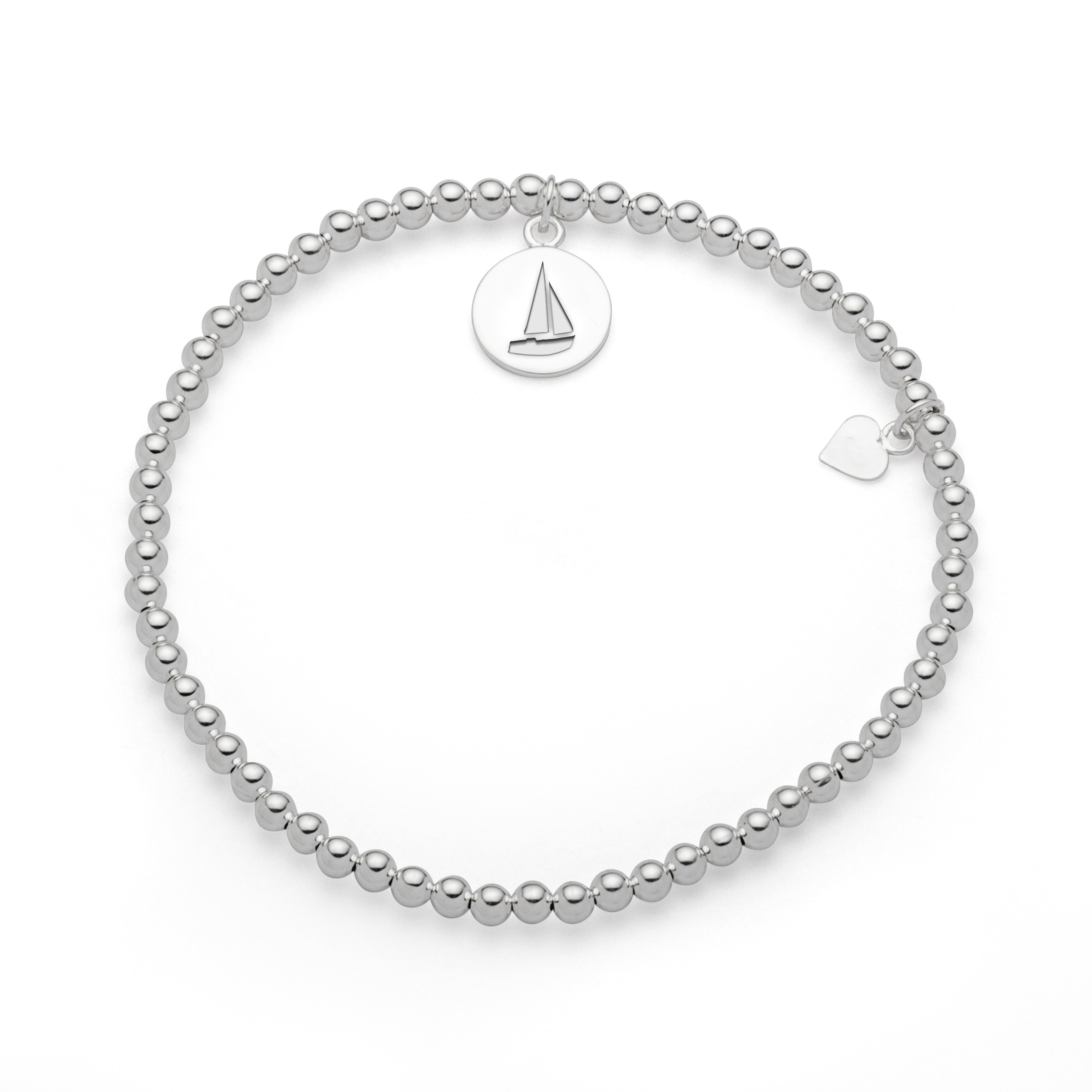 Kugelarmband, aufgezogen auf einem Elastikband, einem maritimen Anhänger als Mittelteil. Länge 195 mm