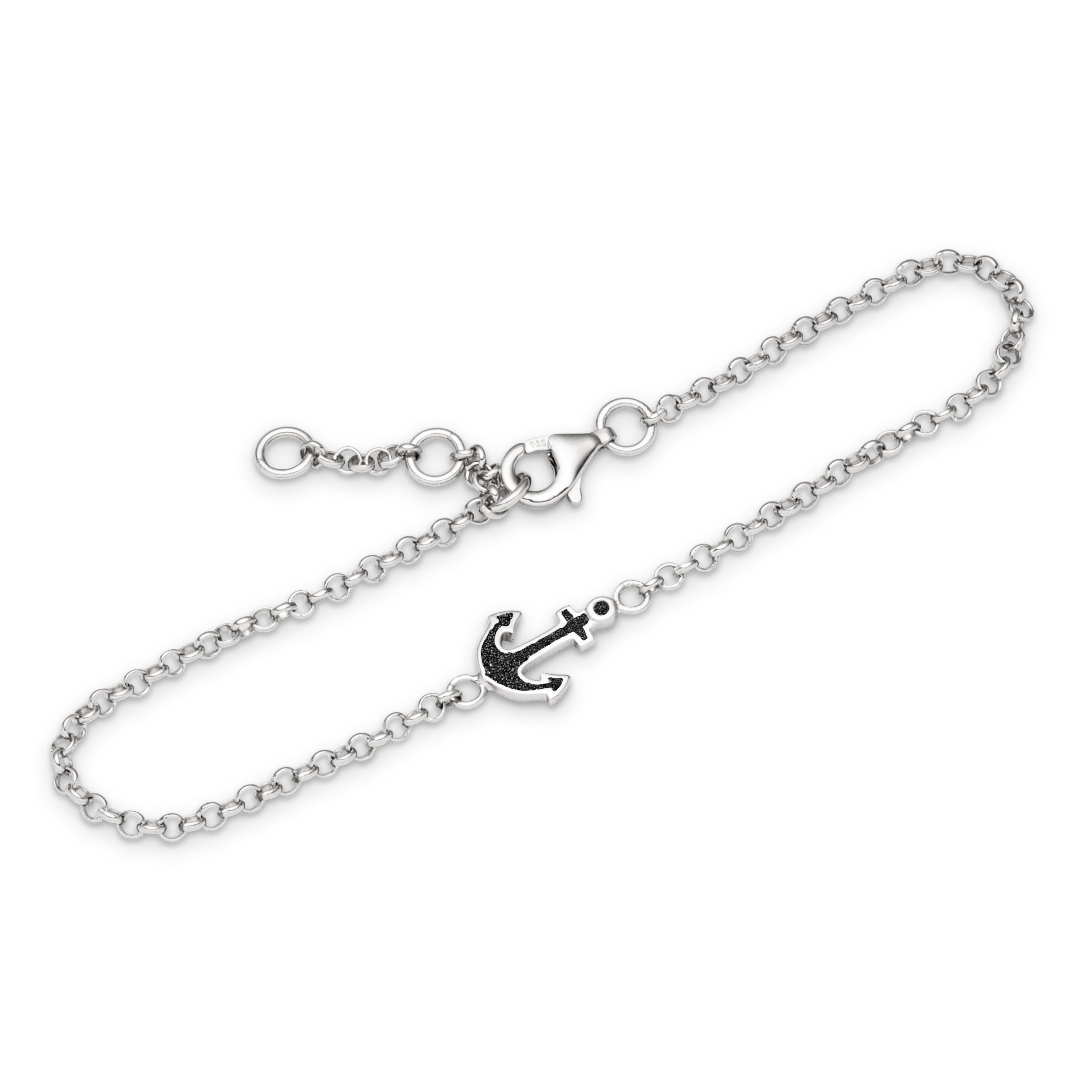 Armband "Anker", feines Erbsarmband (16,5 cm + 3 cm Verlängerungskettchen) mit einem Anker als Mittelteil, gefüllt mit Lavasand, aus rhodiniertem 925er Sterlingsilber.