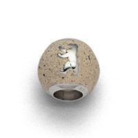 Die Steinsandkugel verzaubert mit klarem, glänzenden Design und den drei silbernen charakteristischen Motiven „Funkturm, Brandenburger Tor und Berliner Bär“, gefasst in hochwertigem 925er Sterlingsilber.