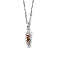 Echte Sehnsucht: Feine Erbskette rhodiniert mit einem Anhänger in Form eines Seepferdes, gefüllt mit Bernsteinsand, alles aus poliertem und rhodiniertem 925er Sterling-Silber, ca. 42 cm lang. Durch die Rhodinierung ist das Schmuckstück anlaufgeschützt.