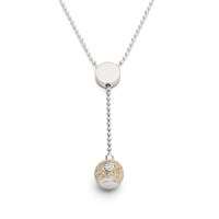 Die Kette (ca. 42 cm lang) aus 925er Sterling-Silber, besteht aus einer geschliffenen Kugelkette mit einem Adapter und einem rhodinierten Kugelelement. Dieses Kugelelement, auch Bead genannt, ist auswechselbar und verzaubert mit klarem, glänzenden Design und den drei silbernen Motiven „Muschel, Möwe und Seestern“. Durch die edle Kombination von außergewöhnlichen Naturmaterialien wie Strandsand, Lavasand, Steinsand oder Bernstein und hochwertigem 925er Sterlingsilber ist die Kette ein echter Blickfang, die jedes Outfit aufwertet.