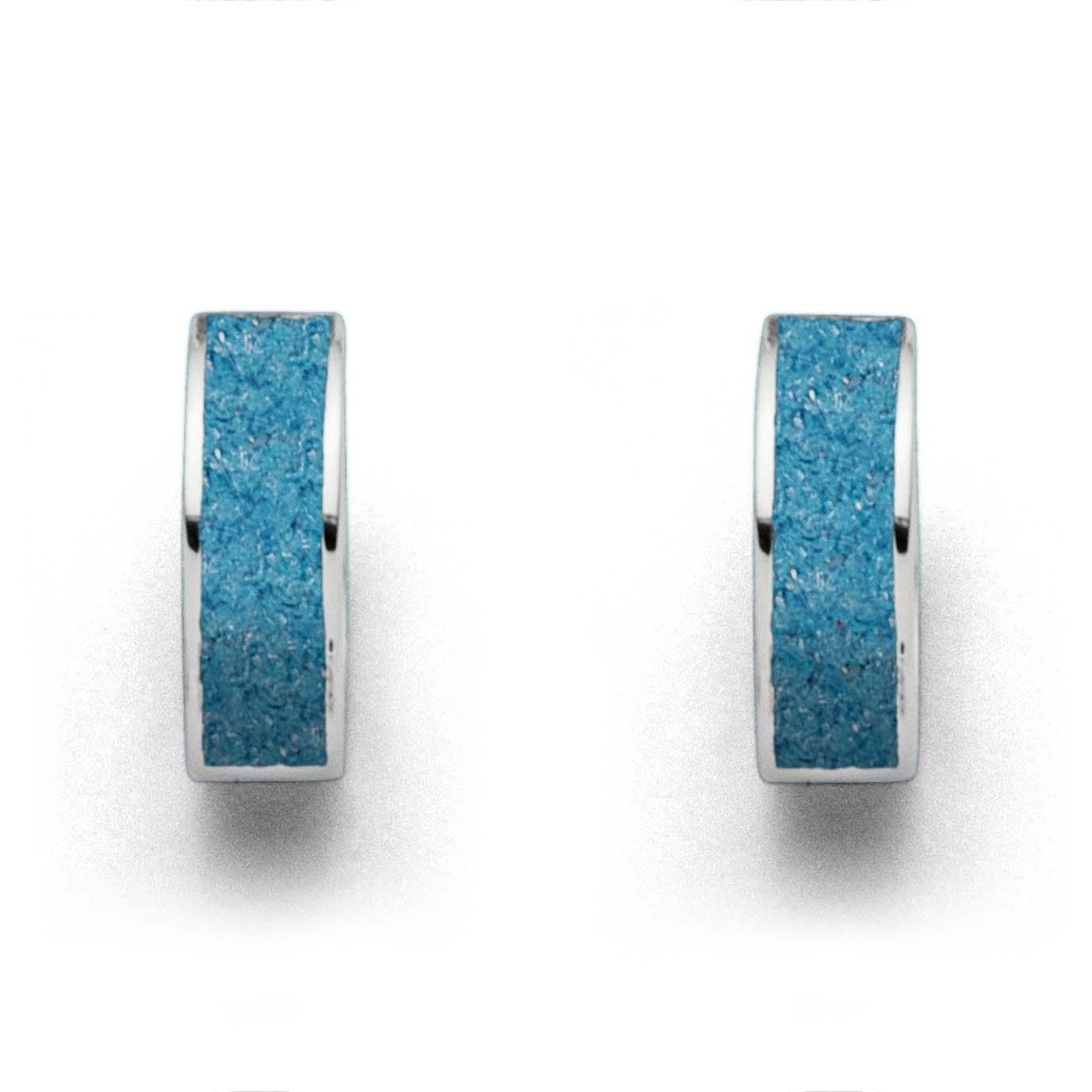 Klappcreole "Marina breit" gefüllt mit blauem Steinsand und gefaßt in rhodiniertem 925er Sterlingsilber.