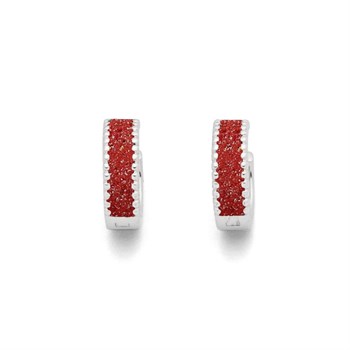 Klappcreole "Strandzauber" mit kleinen Silberkügelchen am Rand und gefüllt mit Korallensand, gefasst in rhodiniertem 925er Sterling-Silber