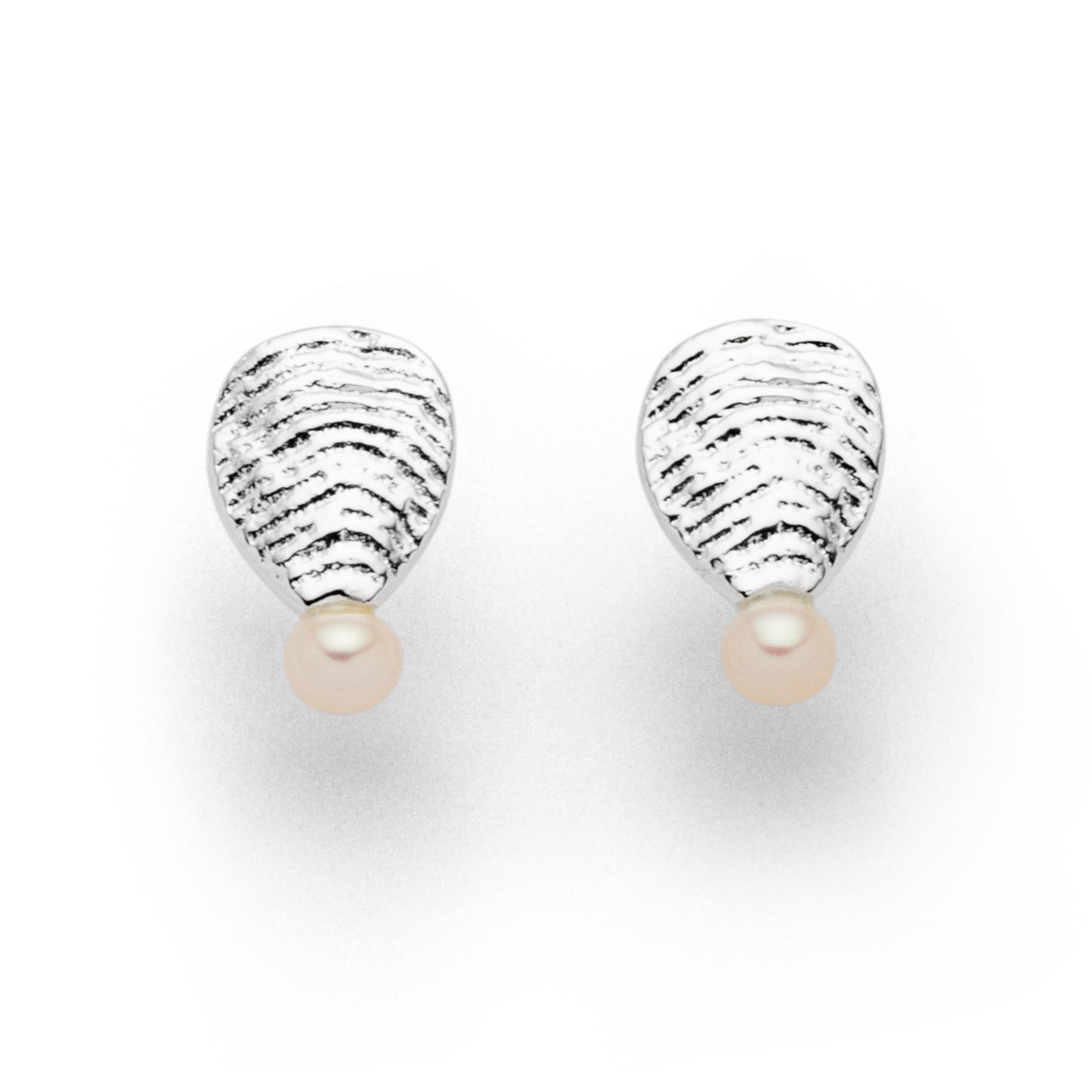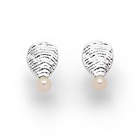 Ohrstecker "Perlenbucht", wellenförmig strukturiert und verziert mit einer 5 mm Süßwasserperle, alles aus poliertem und anlaufgeschützem (e-coating) 925er Sterling-Silber