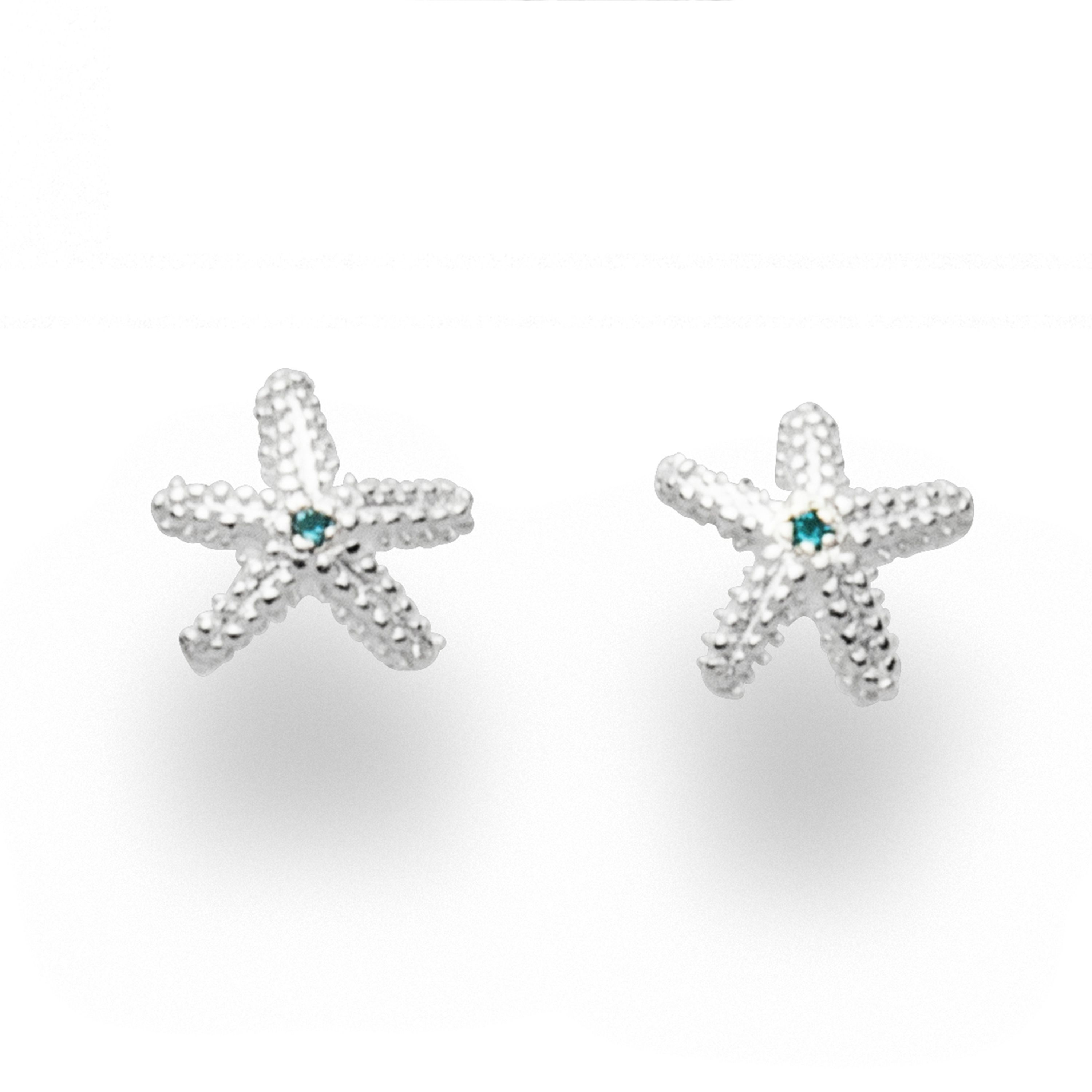 Seestern-Stecker mit einem blauen Zirkonia gefasst in poliertem 925er Sterling-Silber. Ersatz für S1394