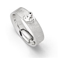 Ring "Anker", schmaler gebürsteter Bandring mit einem polierten Anker, alles aus anlaufgeschütztem 925er Sterlingsilber.