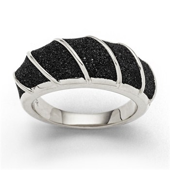 Ring "Bali", mit Lavasand gefüllt, aus poliertem, rhodiniertem 925er Sterlingsilber