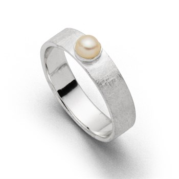 Schmaler, gebürsteter Ring aus 925er Sterling-Silber mit einer Perle