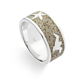 Breiter, gebürsteter Ring "Betty" mit Koralle aus 925er Sterling-Silber