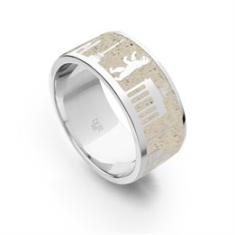 Breiter, gebürsteter Ring aus 925er Sterling-Silber mit einer Perle