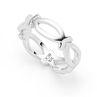 Ring "Fisch", Bandring aus aneinandergreihten "Fischen" aus poliertem, rhodiniertem 925er Sterlingsilber.
