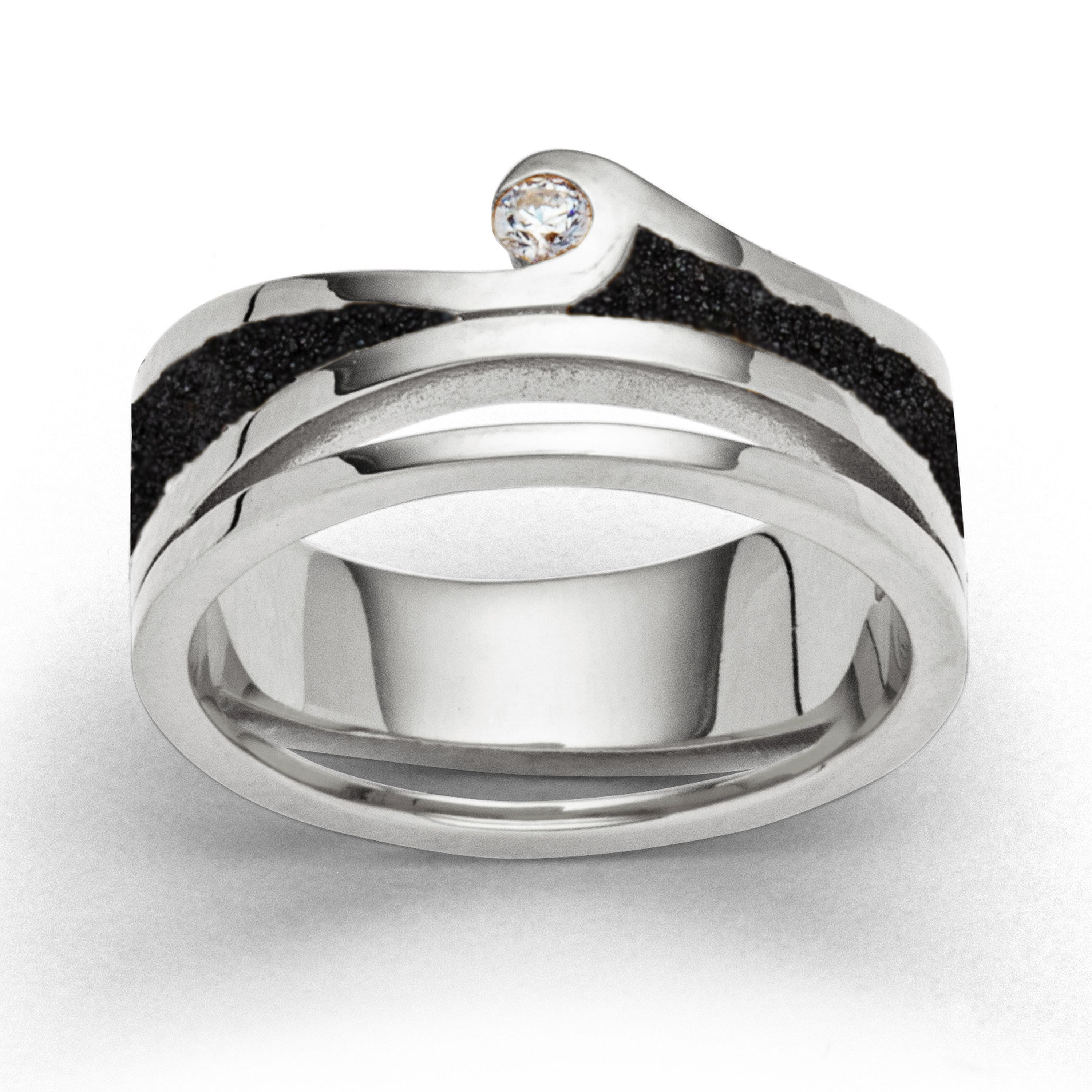 Ring "Maui" Lavasand/Zirkonia rhodiniert