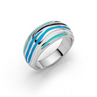 Ring "Ocean II" aus rhodiniertem 925er Sterling-Silber mit eingearbeiteten, wellenförmigen, blau-weiß-schwarzen Emaille-Linien
