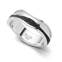 Ring "Strandwellen" in Bandform, eine Welle ausgefüllt mit Lavasand, alles aus rhodiniertem 925er Sterling-Silber. Durch die Rhodinierung ist das Schmuckstück anlaufgeschützt.