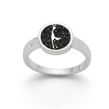 Ring "Sylt", mit der Inselsilhouette, eingebettet in Lavasand, gefaßt in rhodiniertem 925er Sterlingsilber.