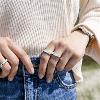 Signet Ring "Ahoi/Anker" mit oxidiertem "Ahoi" Schriftzug und einem Anker, aus 925er Sterlingsilber.