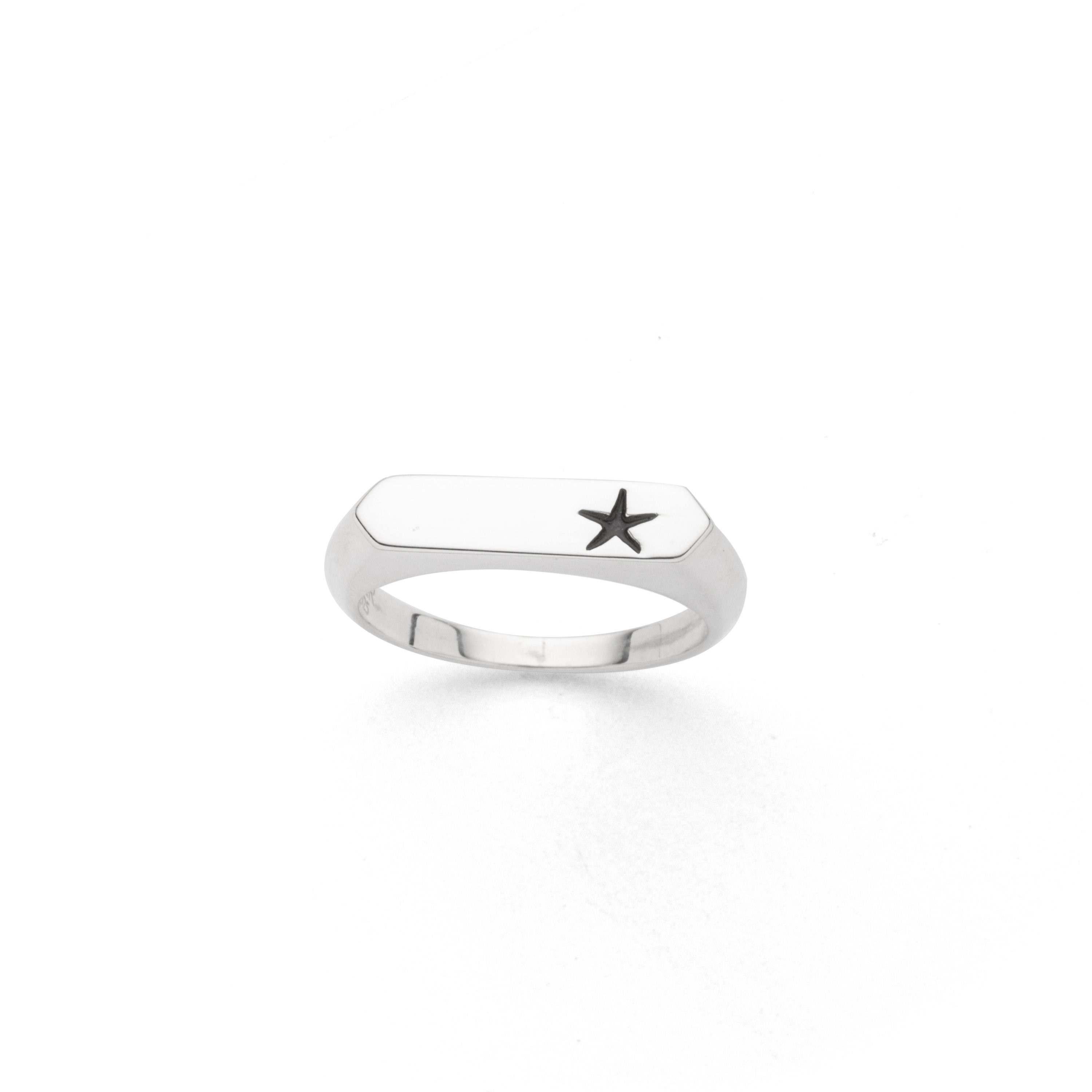 Signet Ring "Seestern" mit einem gelaserten, oxidiertem Seestern, aus 925er Sterlingsilber.