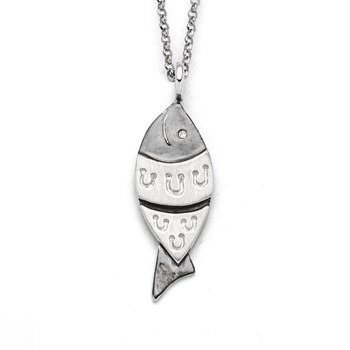 Anhänger in Fischform, leicht strukturiert, abwechselnd matt / poliert/oxidiert aus anlaufgeschütztem (e-coating) 925er Sterling-Silber