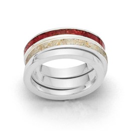 Ring "Marina" bestehend aus drei einzelnen Ringen: einer in schlicht Silber, einer gefüllt mit Strandsand und einer mit Korallengranulat, alle aus 925er Sterlingsilber. Durch die variable Anordnung am Finger sind verschiedene Kombinationen möglich!