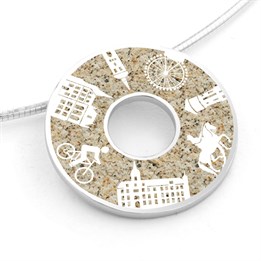 Der geschmackvolle Kontrast zwischen poliertem, rhodiniertem Silber, sowie dem tiefschwarz funkelndem Lavasand zieht alle Blicke auf sich und erinnert an eine sternenklare Nacht in Oldenburg. Funkeln Sie mit diesem entzückenden Schmuckstück um die Wette und und tragen Sie immer einen Teil Ihrer Stadt ganz nah bei sich.